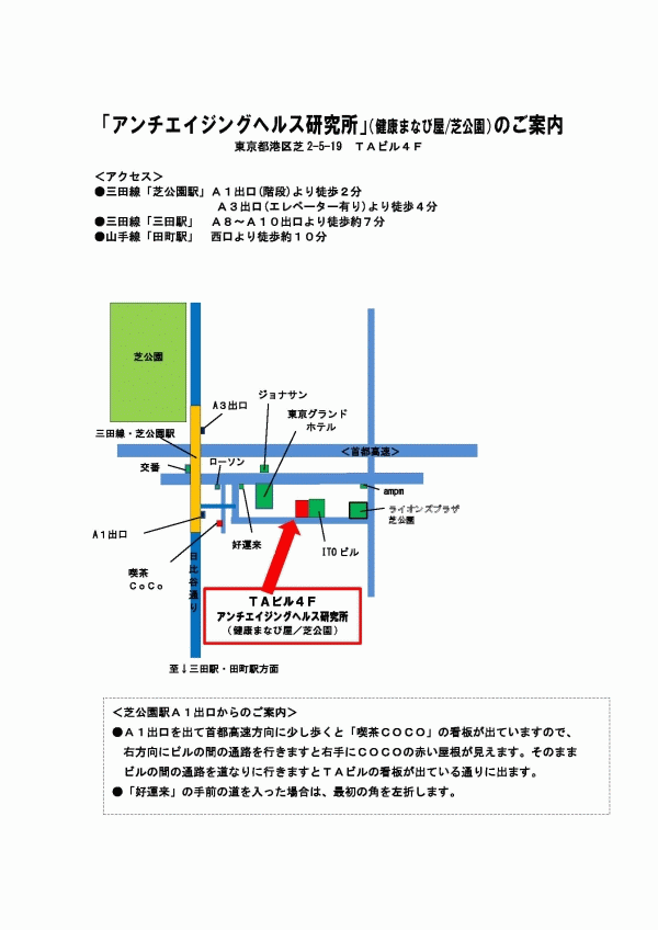 | 会 場 | 「アンチエイジングヘルス研究所」(健康まなび家/芝公園) 東京都港区芝2-5-19 |