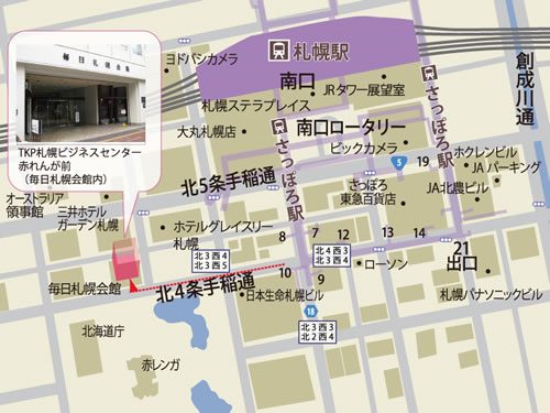 | 会 場 | 「TKP札幌ビジネスセンター赤れんが前(毎日札幌会館内)/5Fすずらん」 北海道札幌市中央区北四条西6丁目1 毎日札幌会館5F |